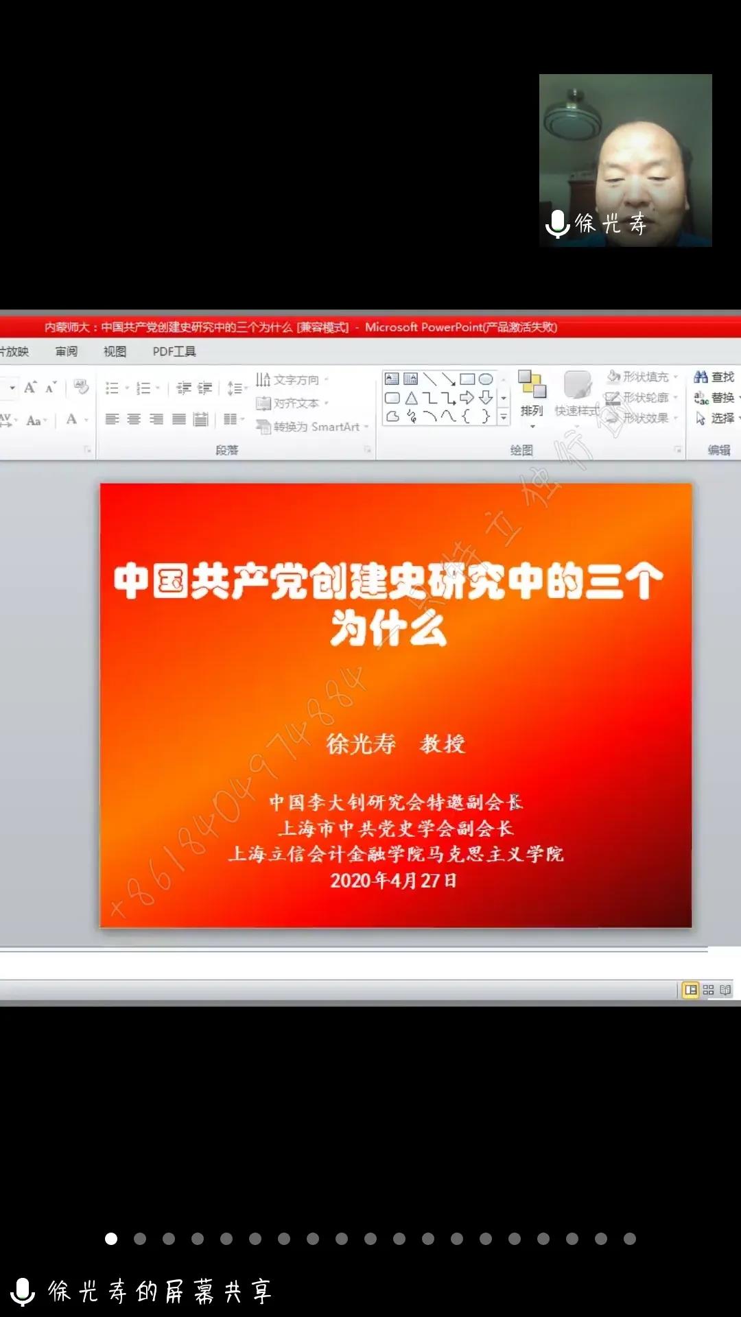 中国共产党的创建是个历史过程。1920年8月,上海共产党小组的建立,拉开了建党的序幕,成为各地共产主义者进行建党活动的联络中心。为迎接中国共产党诞辰100周年,4月27日下午,BEAT365英国官网党总支邀请中国李大钊研究会特邀副会长、上海市中共党史学会副会长、上海立信会计金融学院BEAT365英国官网徐光寿教授在线上为BEAT365官网师生做主题为“中国共产党创建史研究中的三个为什么”的专题讲座。本次讲座由BEAT365英国官网院长李春晖主持,BEAT365英国官网全体教师和研究生聆听了讲座。
