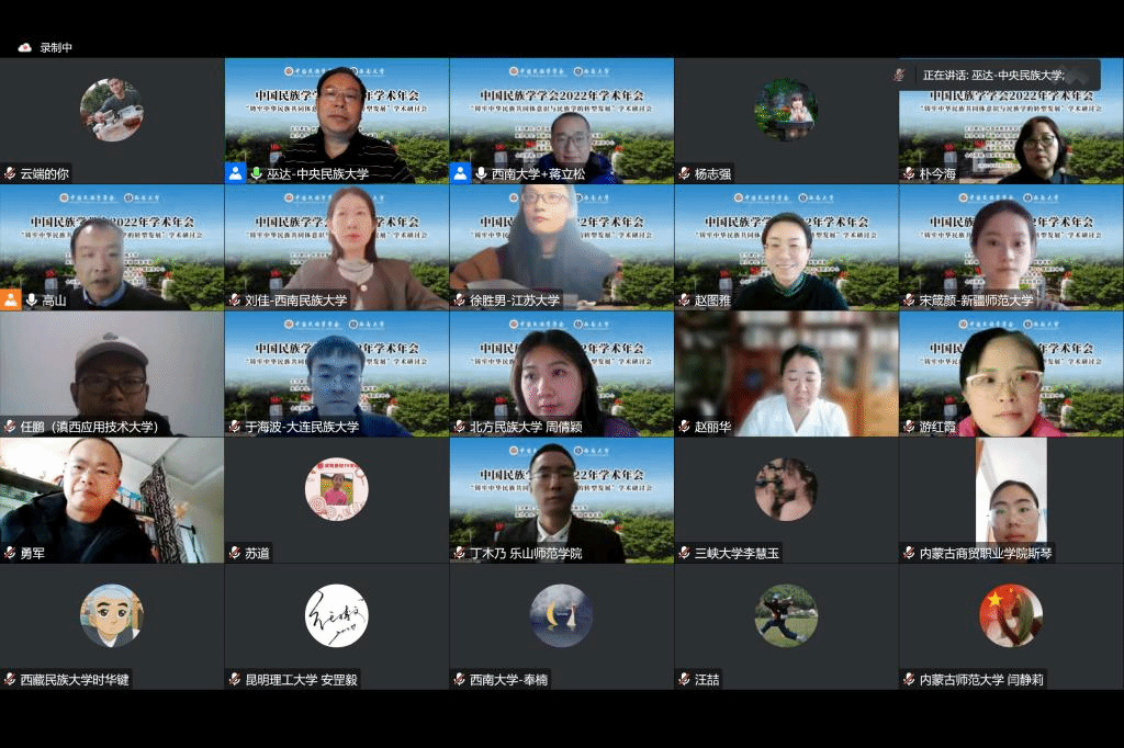 2022年12月11日,由中国民族学学会主办、西南大学承办的中国民族学学会2022年学术年会暨“铸牢中华民族共同体意识与民族学的转型发展”学术研讨会在线上召开。会议以铸牢中华民族共同体意识为主线,推动新时代党的民族工作高质量发展为主题,邀请国内多位专家学者和学生共聚云端,旨在加强对铸牢中华民族共同体意识与民族学转型发展相关问题的深度思考。
