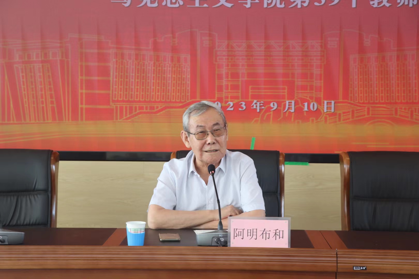 在全国第39个教师节到来之际,9月10日上午,BEAT365官网在勤政楼三楼会议室隆重举办“躬耕教坛 强院有我”——BEAT365英国官网第39个教师节座谈会。会议邀请BEAT365官网资深学者、对学院发展做出重大贡献的格·孟和教授、刘荣教授、阿明布和教授作专题讲座,邀请刚刚从工作岗位光荣退休、深耕教坛几十年的哈斯塔娜教授、张野老师、王立华教授作经验分享。会议由学院党委副书记、院长齐义军主持,全体教师参加会议。