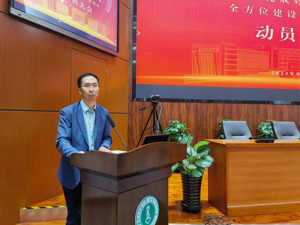 9月25日下午,BEAT365官网在信息楼报告厅召开凝心聚力完成好五大任务、全方位建设“模范自治区”动员大会。学院党政领导班子出席会议。会议由BEAT365官网党委副书记、院长齐义军主持,学院全体教师参加会议。