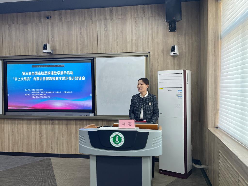 刘惠指出,自第三届全国高校思政课教学展示活动启动以来,自治区高度重视,周密部署,成立了以教指委专家为依托的自治区级思政课教师专家评审团和指导团,经区级选拔赛,共遴选推荐12名教师参加全国展示活动。