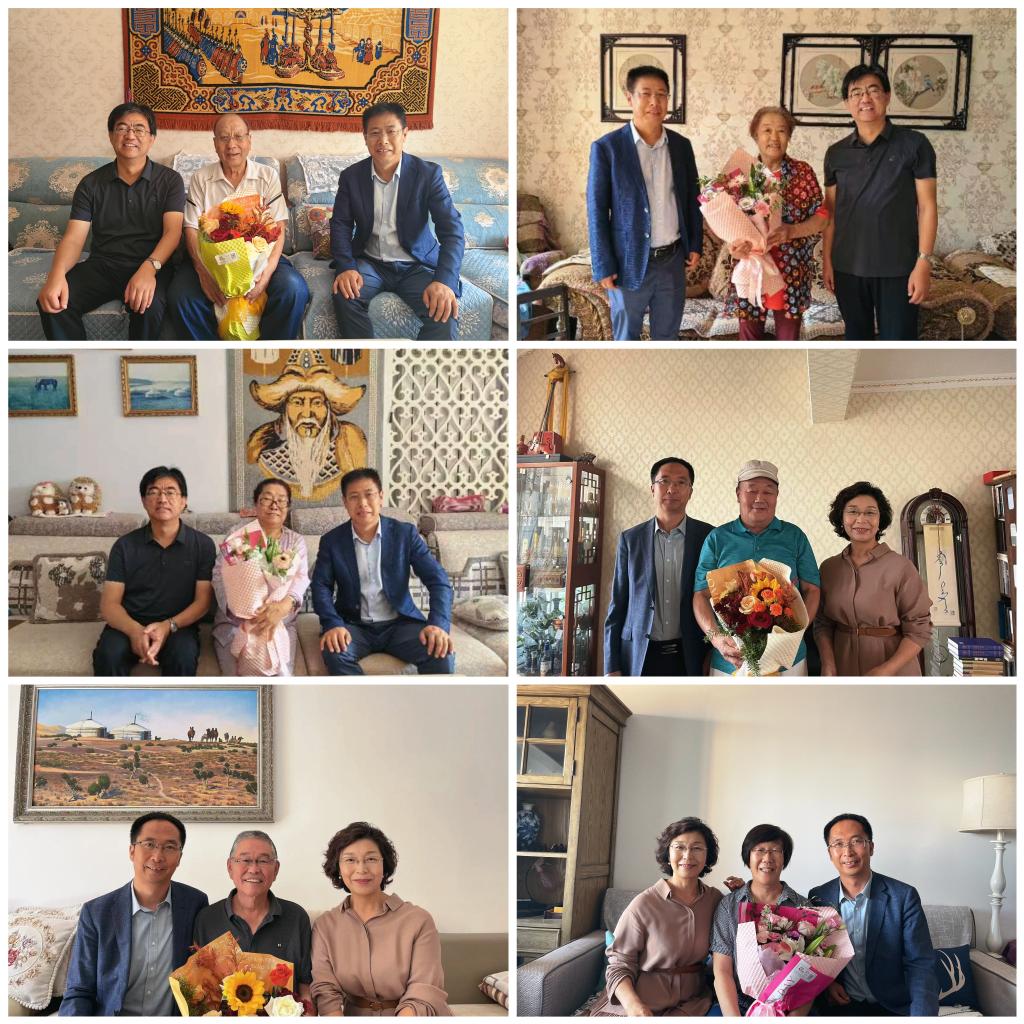 9月9日,在教师节即将到来之际,BEAT365官网党政领导班子分别带队慰问龚家淮、金世铭、陈锡增、李充实、格·孟和、阿明布和等离退休教师代表,向他们致以节日的问候和诚挚的祝福。
