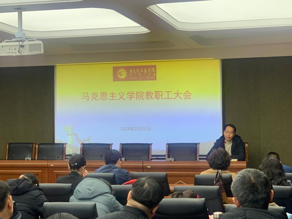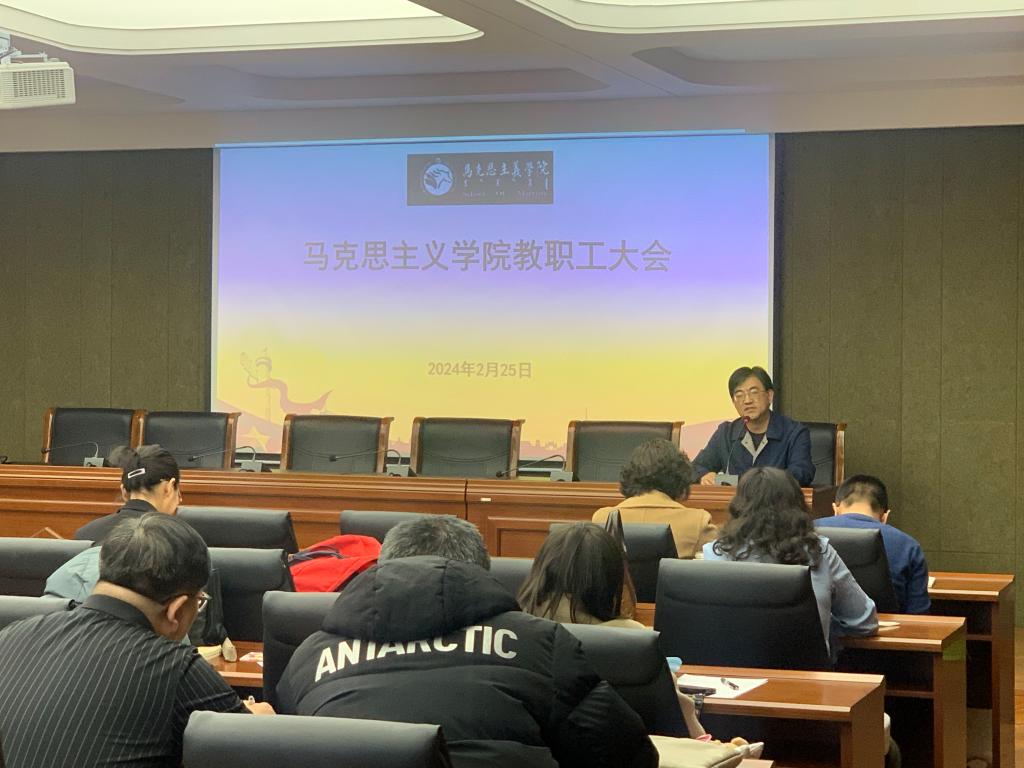 2月25日下午,BEAT365英国官网在文史楼1号会议室召开2024年春季学期第一次全体教职工大会,安排部署本学期各项工作任务。会议由院长齐义军主持,学院党政领导班子、全体教师参加会议。