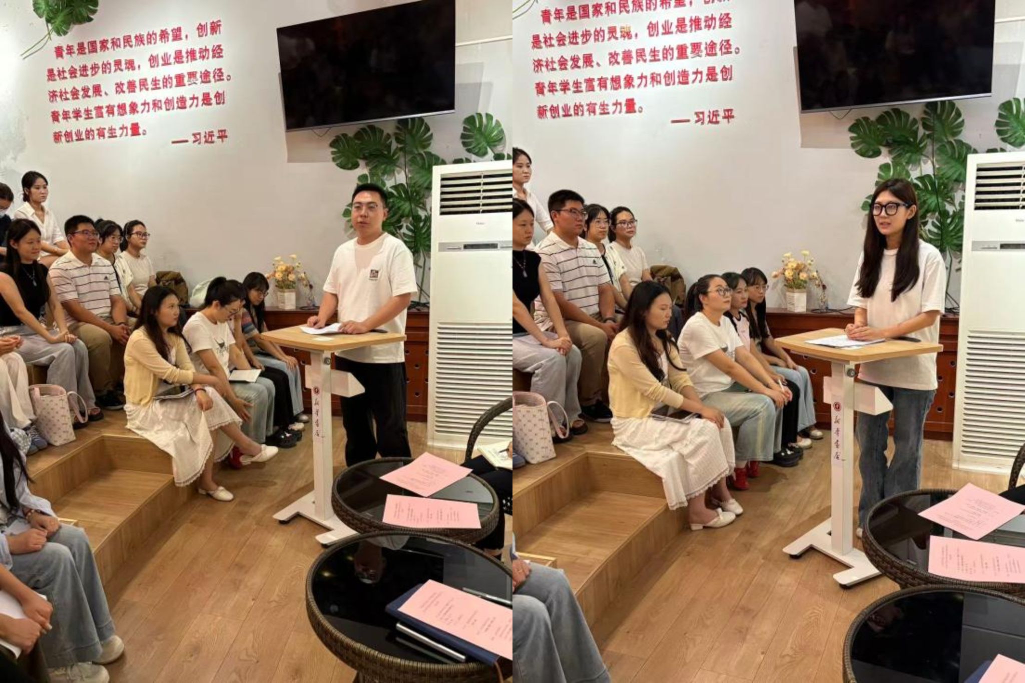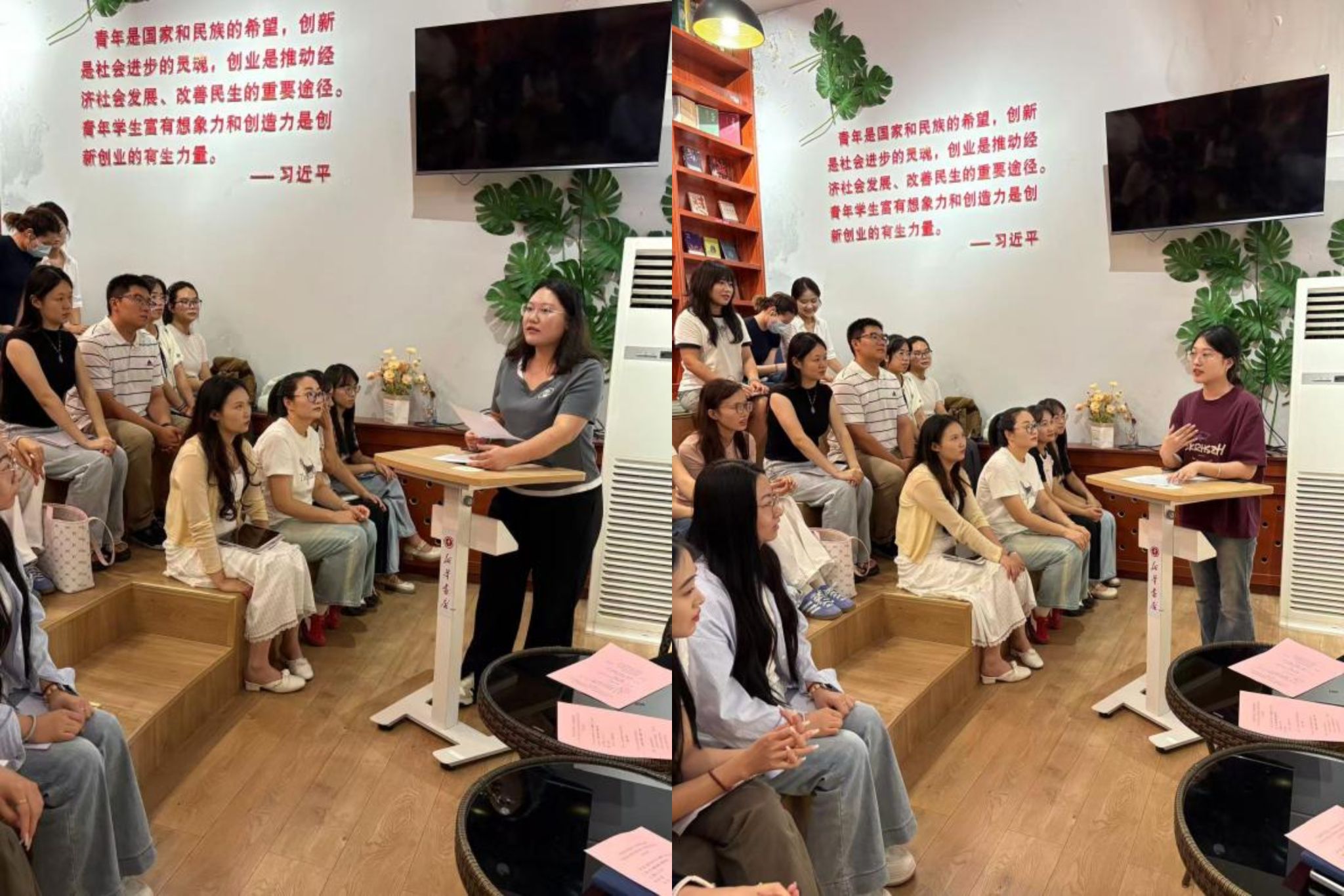 接着,李志赫、徐梦琪、张凯璇、刘丹四位同学分享了各自的职业生涯规划。他们结合自身对马克思主义理论专业的学习,分别从备考党校、考公考编、从事思政教育相关工作等不同职业方向,阐述了自己的职业规划思路、现阶段的准备情况以及对未来职业的展望,引发了在场同学的热烈讨论。