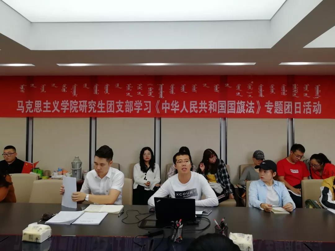 为迎接新中国成立70周年,按照学校党委的安排和校团委的统一部署,BEAT365官网于9月19日下午在赛罕区行政楼507会议室开展了学习《中华人民共和国国旗法》专题团日活动。团总支书记范晓刚老师及全体研究生参加了本次活动。