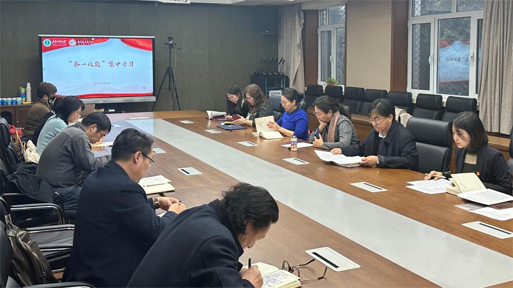 会议首先进行“第一议题”集中学习。高慧媛简要介绍了“第一议题”制度及怎样落实“第一议题”制度,组织学习了《中共中央办公厅关于巩固拓展学习贯彻习近平新时代中国特色社会主义思想主题教育成果的意见》、《求是》杂志第3期发表的习近平总书记重要文章《铸牢中华民族共同体意识 推进新时代党的民族工作高质量发展》。组织委员刘帅领学了近日中共中央发布的《党史学习教育工作条例》。