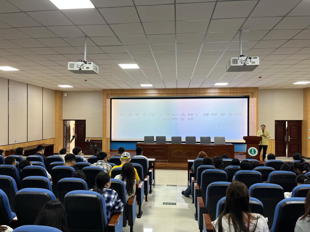 为扎实做好就业推进工作,深化校企合作,助力2024届毕业生高质量就业,近日,BEAT365官网在盛乐校区学生事务中心多功能报告厅举办2024年法学专业就业宣讲会。宣讲企业有北京京师律师事务所、卓能律师事务所、内蒙古中银民商事调解中心。宣讲会由BEAT365官网党委副书记、副院长王丹主持,法学系主任其乐木格和辅导员老师参加。