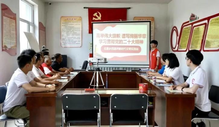 7月6日至9日,BEAT365官网三下乡志愿者围绕“学习领悟习近平新时代中国特色社会主义思想”“宣传党的二十大精神”主题,通过走进村委会、走访企业单位、深入老乡家中等方式,全方位开展为期四天的习近平新时代中国特色社会主义思想和党的二十大精神宣讲会。