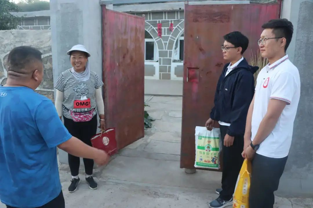 理论宣讲团在张大权老师的带领下,走访队员驻扎农户,为他们送来大米、白面、牛奶等生活物资。通过入户走访,宣讲团成员与村民面对面交谈、心贴心交流,细致地了解其家庭情况、身体健康状况及生产生活等情况。经了解得知,部分老人长期独处,多数时候与孤独为伴,拉拉家常、讲讲故事、询问生活状况……这些最普通的话语,对于老人们来说却无比温暖。志愿者们询问其家中目前存在的问题和疾病治疗康复、社会保障等情况,并关切地提醒他们保重身体,时刻保持乐观向上的精神状态。