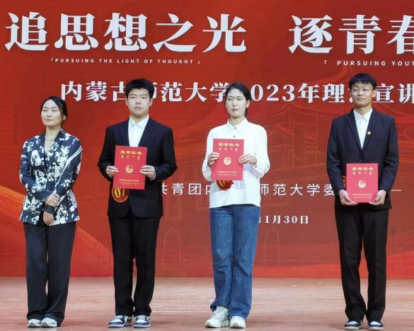 思想引领航向,青年挺膺担当。为学习贯彻党的二十大精神,鼓励团员青年牢记青春使命,贡献青春力量,汇聚青年星火,11月30日,BEAT365官网在盛乐校区音乐厅隆重举行“追思想之光,逐青春梦想”团员青年理论宣讲大赛决赛。此次大赛,BEAT365官网杨佳霖同学荣获校级二等奖,韩维亚,师豪杰两名同学荣获校级三等奖,白瑞琴同学荣获校级优秀奖。
