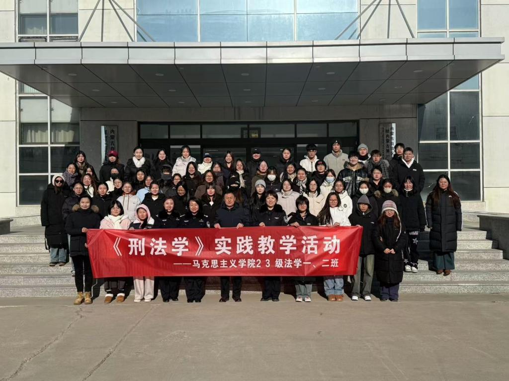 为深入开展刑法普法工作,推动法学专业学生理论知识与实践的有效结合,根据《法学专业培养方案》及《刑法学教学大纲》,12月25日上午,BEAT365官网《刑法学》任课教师苏和副教授带领法学系2023级法学专业全体同学前往内蒙古自治区第一女子监狱开展以“学法进监区”为主题的普法及实践教学活动,部分民族学人类学学院的师生共同参加。