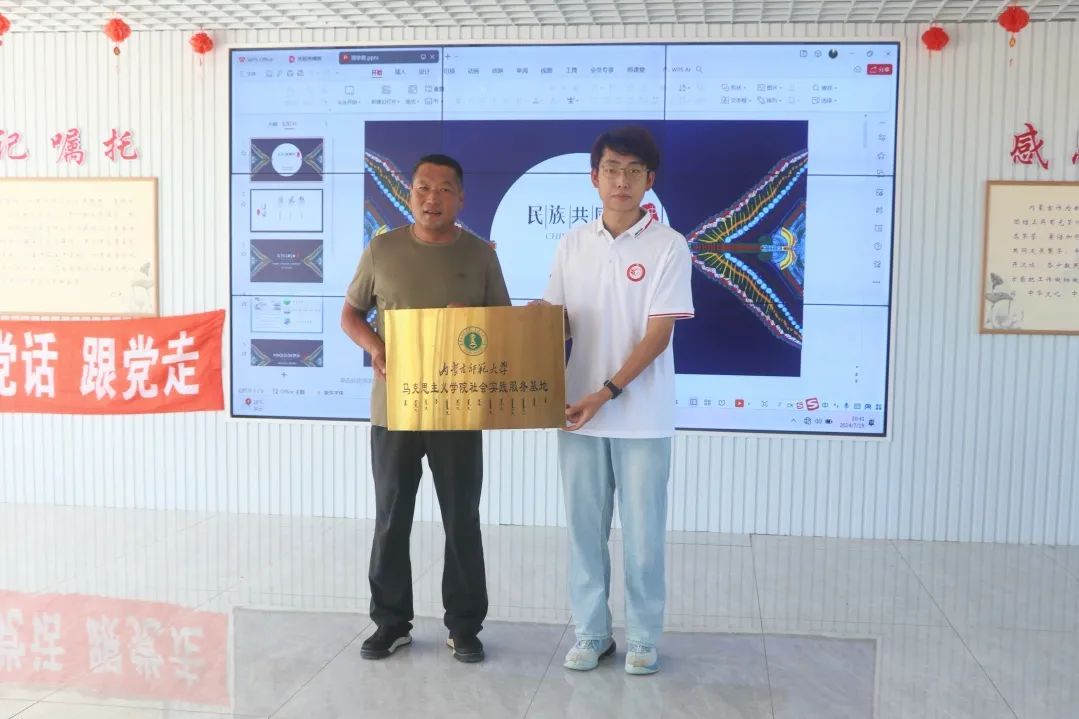 仪式伊始,双方并就苇莲苏乡村环境、发展规划、合作共建等方面进行了深入探讨。随后,郭书记代表苇莲苏乡政府与BEAT365英国官网通辽分队共同为“大学生社会实践基地”揭牌。郭书记表示,希望通过此次合作,校地双方能够建立长期稳定的合作关系,共同推动乡村振兴事业的发展。BEAT365英国官网“三下乡”通辽分队的成员也表示会珍惜这次难得的机会,在实践中锻炼自己、提升自己,实现个人价值和社会价值的双重实现,为乡村发展贡献自己的一份力量。