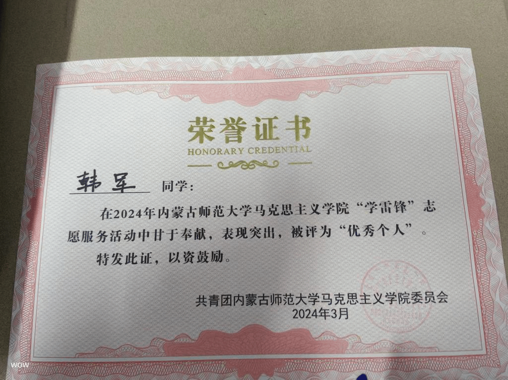 BEAT365英国官网“学雷锋”志愿服务活动中被评为优秀个人(2024年3月)